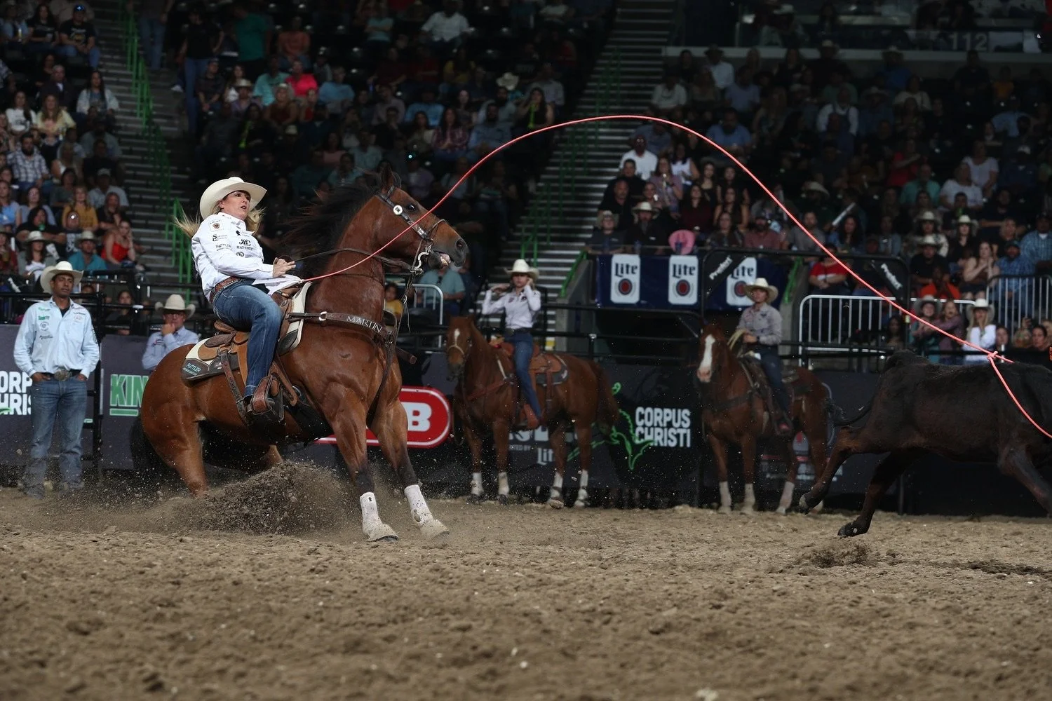 After graduation, she first attended Vernon College in Vernon, Texas. In the two years she spent at Vernon College, Jackie won a NIRA National Breakaway Roping title and a NIRA National Women’s Team title. She went on to attend Tarleton State University in Stephenville, Texas where she was part of a second NIRA National Champion Women’s Team and was a NIRA Reserve National Champion Breakaway Roper. By the time Jackie graduated with her business degree, she had 3-consecutive NIRA Southwest Region Champion Breakaway Roping titles under her belt.